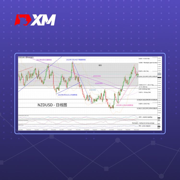 XM官网NZDUSD今日上涨,但仍持续区间震荡 。市场多空仍在观望 ,空头尝试引发另一轮修正,以回调2023年10月至12月的部分涨势。目前NZDUSD被抑制在2023年11月14日的趋势线下方,不过 ,本周的美国数据若足够强劲,或许能将NZDUSD推低。
