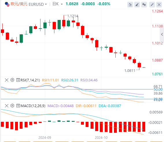 美元指数:截止发稿,美元指数交投于103.77附近 。美联储宽松政策预期升温,市场目前预计美联储年底前将降息2次 ,且未来12个月将总共宽松150个基点 。强劲的经济数据,包括强劲的美国零售额和健康的劳动力市场,继续支撑强劲的经济前景。美国9月零售销售意外上涨 ,环比增长0.4%至7144亿美元,超出市场预期。8月,美国零售销售环比下降0.1% 。技术面上 ,如果美元指数保持在103.60水平上方 ,它将走向下一个阻力位,即位于104.60–104.80区间。   欧元:截止发稿,欧元/美元徘徊于1.0828附近。欧元/美元周四下跌,收报1.0831 ,跌幅0.29% 。欧洲央行(ECB)周四早些时候降息25个基点后,欧元/美元持续回落。欧央行完全按照市场预测中值下调政策利率,将存款机制利率和主要再融资操作利率下调了25个基点 ,政策利率分别降至3.25%和3.4%。似乎欧元区还没有得到足够的支持,欧洲截至9月的消费者物价调和指数(HICP)终值降幅也超出预期,年率终值仅为1.7% ,而预期为1.8% 。技术面上,如果欧元/美元成功收于1.0800水平下方,它将测试1.0765–1.0780的支撑位。RSI处于超卖区域 ,因此反弹的风险正在增加。   英镑:截止发稿,英镑/美元徘徊于1.3014附近 。英镑/美元周四上涨 ,收报1.3011,涨幅0.15%。本周英国数据总体未及预期,英国消费者物价指数(CPI)通货膨胀、生产者物价指数(PPI)通货膨胀和英国劳动力数据均低于市场预测。由于英国通胀率反转幅度超出许多人的预期 ,就业数据也未能达到投资者的预期,英国央行(BoE)将面临越来越大的市场压力,要求其加快降息步伐 。技术面上 ,突破1.3020水平将推动英镑/美元走向50MA1.3058 。   黄金 、原油行情走势分析