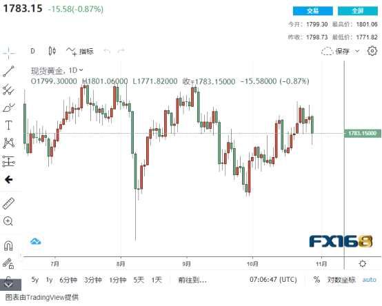 (现货黄金日线走势图 来源:FX168)